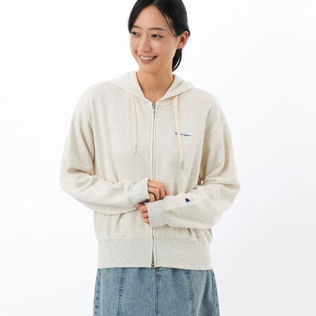 環境に配慮して生産されたサステナブルなアメリカ綿と植物由来のレーヨンの混紡生地を使用した、裏毛スウェット素材のジップフーデッドスウェットシャツです。軽量でありながら、柔らかさと量感を併せ持った着心地の良さが特長。肌離れも良く、オールシーズン快適に着用できます。肩幅と身幅にゆとりを持たせたリラックスフィットで、フロントは逆開ジップを採用。小物の収納に便利なカンガルーポケット付きです。左胸に入れた、ボディカラーごとに異なるビビッドな色のChampionロゴ刺繍がアクセント。製品洗い加工による肌馴染みの良い快適な風合いと、洗濯後の縮みにくさもポイントです。