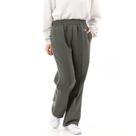 環境に配慮されたリサイクルポリエステルを使用したポンチ素材のロングパンツです。軽量でストレッチ性に優れ、コットンのような柔らかい肌触りが特長。通気性、保温性も高く、しわにもなりにくいので、着心地が良く、ルームウェアにも適しています。細めのストレートシルエット。スラックス風のデザインやセンターのピンタックが、シックなコーディネートにもマッチします。両脇に入れたビビッドなカラーのパイピングもポイント。ウエストはドローストリングでサイズ調節できます。