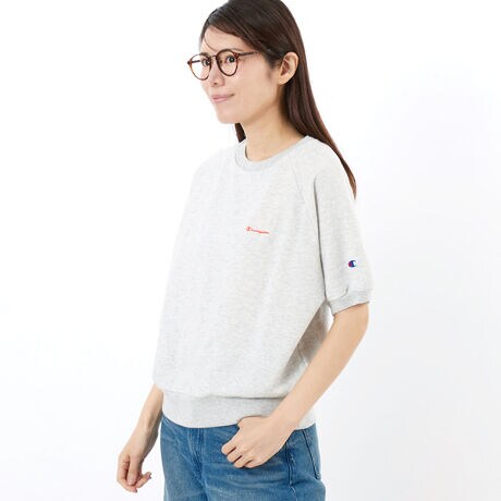 環境に配慮して生産されたサステナブルなアメリカ綿と植物由来のレーヨンの混紡生地を使用した、裏毛スウェット素材のショートスリーブスウェットシャツです。軽量でありながら、柔らかさと量感を併せ持った着心地の良さが特長。肌離れも良く、オールシーズンで快適に着用できます。ラグランスリーブで、身幅とアームホールにゆとりを持たせたリラックスフィット。袖のパフスリーブがデザインポイントです。左胸に入れた、ボディカラーごとに異なるビビッドな色のChampionロゴ刺繍がアクセント。製品洗い加工による肌馴染みの良い快適な風合いと、洗濯後の縮みにくさもポイントです。