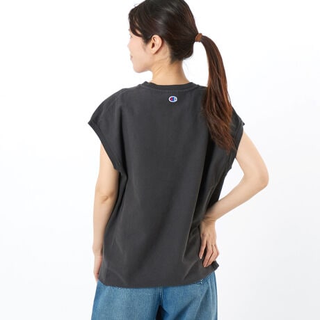 Champion(R)(チャンピオン)を代表する製法の「REVERSE WEAVE(R)(リバースウィーブ(R))」。環境に配慮して生産されたサステナブルなアメリカ綿100%のしっかりとした天竺素材「REVERSE WEAVE(R) 9.4oz. Jersey(リバースウィーブ(R) 9.4オンス ジャージー)」を使用した、高い耐久性が特長のスリーブレスシャツです。本来は縦方向に使われる生地を横方向に使用する「REVERSE WEAVE(R)」製法によって縦の生地の縮みを防ぐと同時に、両脇にリブを付けることで横の縮みへの影響を少なくし、動きやすさに配慮しています。身幅、肩幅にゆとりを持たせたリラックスフィットで、カットオフ仕様の裾がデザインポイント。製品染めによる独特な色合いが特長です。