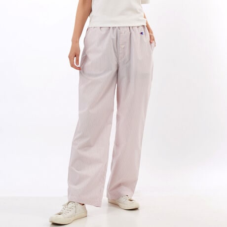 ポリエステルと植物由来のレーヨンの混紡生地を使用したロングパンツです。フルレングスで腰から裾にかけて少し広がりを持たせたストレートシルエット。ストレッチ性もあるのでストレスなく着用できます。ウエストはスピンドルでサイズ調節可能で、両脇にポケット付き。四つ穴ボタン付きの飾り前立てがデザインポイントです。展開色ごとに異なる柄を採用したカラーバリエーション。「二浴染め」という手法により縦糸を染め残すことで全体的に色褪せたような印象を加え、ヴィンテージテイストを演出しています。