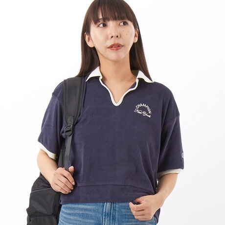 環境に配慮して生産されたサステナブルなアメリカ綿80%、リサイクルポリエステル20%のテリークロス生地を使用したスキッパーシャツです。タオルのようにループ状に編んだパイル生地の、柔らかな質感と肌触りの良さが特長。身幅、肩幅にゆとりを持たせたリラックスフィットです。「スキッパー」と呼ばれる特徴的な襟に、ボディカラーと色の異なるリブ生地を用いているのがポイント。左胸にはリブと同色の糸によるブロック体の「CHAMPION(チャンピオン)」と筆記体の「New York」の刺繍入りです。製品洗い加工により、着用の当初から着慣れた風合いが味わえます。