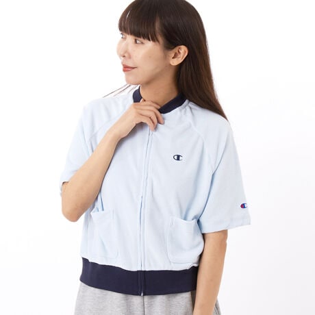 環境に配慮して生産されたサステナブルなアメリカ綿80%、リサイクルポリエステル20%のテリークロス生地を使用したジップショートスリーブカーディガンです。タオルのようにループ状に編んだパイル生地の、柔らかな質感と肌触りの良さが特長。身幅、肩幅にゆとりを持たせたリラックスフィット。ボディカラーと色の異なる襟と裾のリブがポイント。左胸にはリブと同色のCロゴ刺繍入りです。フロント左右には小物の収納に便利な小ぶりのパッチポケット付き。製品洗い加工により、着用の当初から着慣れた風合いが味わえます。