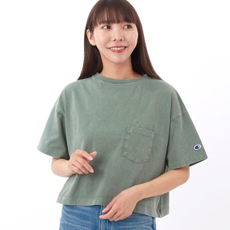 環境に配慮して生産されたサステナブルなアメリカ綿を100%使用した、ヘビーウェイトのショートスリーブTシャツです。丈をやや短めにし、身幅に大きくゆとりを持たせたルーズフィット。左胸のポケットの上にボディカラーと同色のChampion(チャンピオン)ロゴ刺繍入りです。バイオウォッシュ加工によって、柔らかな風合いやアタリ感、色落ちなどのヴィンテージテイストを演出しています。