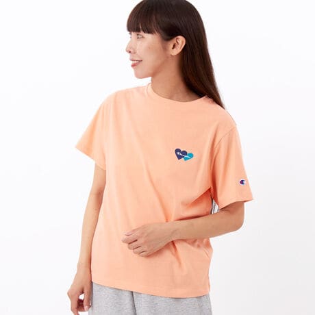 環境に配慮して生産されたサステナブルなアメリカ綿を100%使用した、軽量で柔らかく肌触りの良いショートスリーブTシャツです。身幅にゆとりを持たせたリラックスフィット。左胸にボディカラーと異なる色で入れた、ハートとChampion(チャンピオン)ロゴの刺繍が特徴的です。製品洗い加工による肌馴染みの良い快適な風合いと、洗濯後の縮みにくさもポイント。