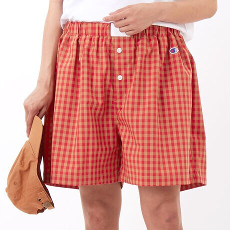 ポリエステルと植物由来のレーヨンの混紡生地を使用したショーツです。ウエスト部分にギャザーを入れることで生まれた、ふんわりとボリュームのあるシルエット。ストレッチ性も備えており、ストレスなく着用できます。ウエストはスピンドルでサイズ調節可能で、両脇にポケット付き。四つ穴ボタン付きの飾り前立てがデザインポイントです。展開色ごとに異なる柄を採用したカラーバリエーション。「二浴染め」という手法により縦糸を染め残すことで、全体に色褪せたような印象を加え、ヴィンテージテイストを演出しています。
