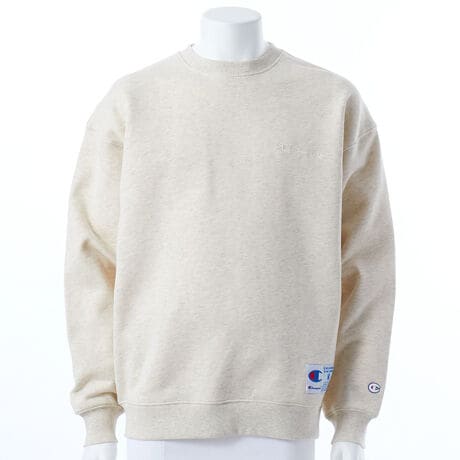 環境に配慮して生産されたサステナブルなアメリカ綿とリサイクルポリエステルを使用。表面を高密度に編み立てることで適度なハリとコシを備え、型くずれしにくく、着こむほどに肌に馴染む裏毛素材のクルーネックスウェットシャツです。大きくゆとりを持たせた身幅、肩幅、袖幅に対し、着丈をやや短めにして着用時のシルエットのバランスをとった、ACTION STYLE(アクションスタイル)独自のサイジングのルーズフィットです。左胸にボディカラーと同色のChampionロゴ刺繍入り。袖口の立体的なCロゴ刺繍もポイントです。裾にはジョックタグ付き。