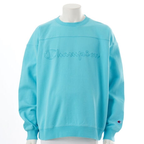 ドライで適度なハリとコシのあるコットン100%の裏毛素材を使用したクルーネックスウェットシャツです。ショルダーヨークの切り替え入りで、大きくゆとりを持たせた身幅、肩幅、袖幅に対し、着丈をやや短めにして着用時のシルエットのバランスをとった、ACTION STYLE(アクションスタイル)独自のサイジングのルーズフィットです。ユーズド感を持たせる加工により、長く愛用してきたようなムラのある色合いを出しています。胸にはボディカラーと同色の縁取りデザインのChampionロゴ刺繍入りです。