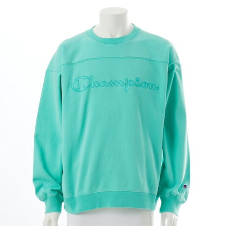 ドライで適度なハリとコシのあるコットン100%の裏毛素材を使用したクルーネックスウェットシャツです。ショルダーヨークの切り替え入りで、大きくゆとりを持たせた身幅、肩幅、袖幅に対し、着丈をやや短めにして着用時のシルエットのバランスをとった、ACTION STYLE(アクションスタイル)独自のサイジングのルーズフィットです。ユーズド感を持たせる加工により、長く愛用してきたようなムラのある色合いを出しています。胸にはボディカラーと同色の縁取りデザインのChampionロゴ刺繍入りです。