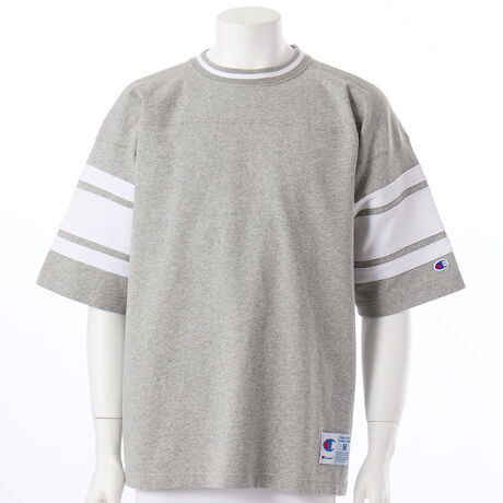 コットンを100%使用した、ヘビーウェイトのフットボールTシャツです。大きくゆとりを持たせた身幅、肩幅、袖幅に対し、着丈をやや短めにして着用時のシルエットのバランスをとった、ACTION STYLE(アクションスタイル)独自のサイジングのルーズフィット。製品洗い加工により、着用の当初から着慣れた風合いが味わえます。袖の切り替えは身生地と同素材を使用し、ラインリブの色と連動させています。裾にはジョックタグ付きです。