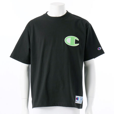 環境に配慮して生産されたサステナブルなアメリカ綿を100%使用した、ドライな着心地のショートスリーブTシャツです。ゆとりを持たせた身幅、肩幅、袖幅に対し、着丈をやや短めにして着用時のシルエットのバランスをとった、ACTION STYLE(アクションスタイル)独自のサイジングのリラックスフィット。製品洗い加工により、着用の当初から着慣れた風合いが味わえます。左胸にツイル生地とメッシュを組み合わせて立体感を出したネオンカラーのCロゴワッペン入り。襟内側にChampion(チャンピオン)ロゴ入りのテープを貼って襟ぐりの補強を行うと同時に、デザインにアクセントを添えています。裾にはジョックタグ付きです。