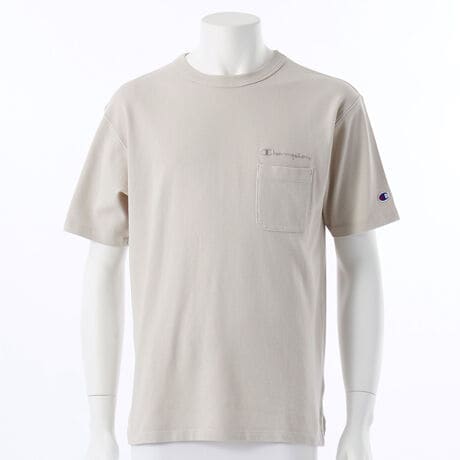[型番:C3-D317]目が詰まった構造で表面に光沢感のあるコットン素材を使用した、ヘビーウェイトのショートスリーブポケットTシャツです。「顔料染め」という製品染め加工により、縫製部分と生地の色合いが異なる「アタリ感」を演出しています。レギュラーフィットで、左胸のポケット上部にボディカラーと同色のChampion(チャンピオン)ロゴ刺繍入り。