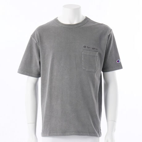 [型番:C3-D317]目が詰まった構造で表面に光沢感のあるコットン素材を使用した、ヘビーウェイトのショートスリーブポケットTシャツです。「顔料染め」という製品染め加工により、縫製部分と生地の色合いが異なる「アタリ感」を演出しています。レギュラーフィットで、左胸のポケット上部にボディカラーと同色のChampion(チャンピオン)ロゴ刺繍入り。