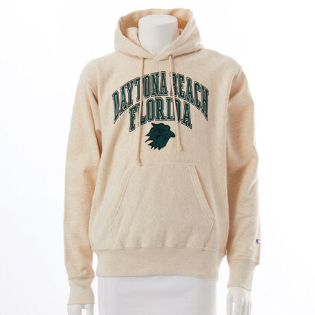 チャンピオンを代表する製法の「REVERSE WEAVE(R)(リバースウィーブ(R))」。環境に配慮して生産されたサステナブルなアメリカ綿100%の、柔らかい手触りで着やすい裏毛素材を使用した「REVERSE WEAVE(R) 10oz. French Terry(リバースウィーブ(R) 10オンス フレンチテリー)」シリーズのフーデッドスウェットシャツです。本来は縦方向に使われる生地を横方向に使用する「REVERSE WEAVE(R)」製法によって縦の生地の縮みを防ぐと同時に、両脇に「EXPANSION GUSSET(エクスパンションガゼット)」を付けることで横の縮みへの影響を少なくし、動きやすさに配慮しています。身幅にゆとりを持たせたリラックスフィット。胸のプリントはチャンピオンブランドと親和性の高いカレッジ風グラフィックを現代に落とし込んだもので、アメリカの地名がモチーフ。