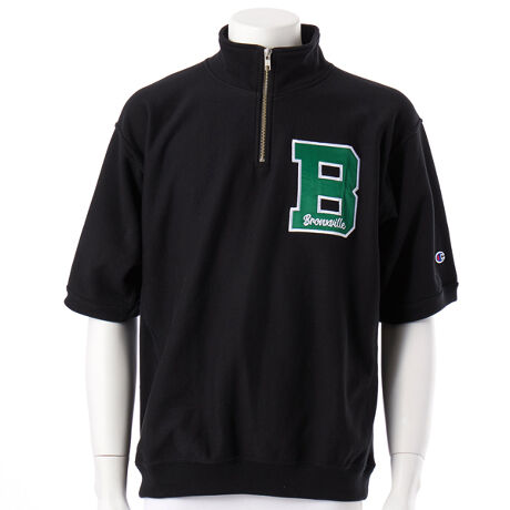 チャンピオンを代表する製法の「REVERSE WEAVE(R)(リバースウィーブ(R))」。環境に配慮して生産されたサステナブルなアメリカ綿100%の、柔らかい手触りで着やすい裏毛素材を使用した「REVERSE WEAVE(R) 10oz. French Terry(リバースウィーブ(R) 10オンス フレンチテリー)」シリーズのショートスリーブハーフジップスウェットシャツです。本来は縦方向に使われる生地を横方向に使用する「REVERSE WEAVE(R)」製法によって縦の生地の縮みを防ぐと同時に、両脇に「EXPANSION GUSSET(エクスパンションガゼット)」を付けることで横の縮みへの影響を少なくし、動きやすさに配慮しています。身幅、肩幅にゆとりを持たせたリラックスフィット。胸のプリントはチャンピオンブランドと親和性の高いカレッジ風グラフィックを現代に落とし込んだもので、アメリカの地名がモチーフ。