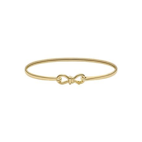 このゴールドトーンのブラス製バングルは、洗練された仕上げと、控えめなフック留めの流線型のシルエットが特徴です。その控えめなデザインは、モダンなシンプルさを重視するエンポリオ・アルマーニを際立たせ、どんなジュエリーコレクションにも万能な魅力を添えます。