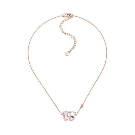 ローズゴールドトーンのブラスを使用したこの繊細なネックレスは、パヴェセットを施したキュービックジルコニアをあしらったクマの形のペンダントと、小さなレッドエナメルのハートがアクセントになっています。繊細なチェーンと温かみのあるメタリック仕上げが、遊び心のある魅力とモダンな洗練を融合させたエンポリオ・アルマーニのシグネチャーを表現しています。ロブスタークラスプと調節可能なエクステンダーチェーン付き。