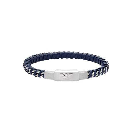 ブラッシュ仕上げのシルバートーンステンレススチールとネイビーの編み込みストラップを組み合わせたこのモデルは、すっきりとしながらもダイナミックな印象を与えます。IDプレートは視線を集める洗練されたポイントを提供し、シームレスな機能性を実現するマグネットで開閉します。流線型のフォルムと多彩な色調が特徴のこのブレスレットは、エンポリオ・アルマーニの控えめなラグジュアリー感とモダンな汎用性を体現しています。