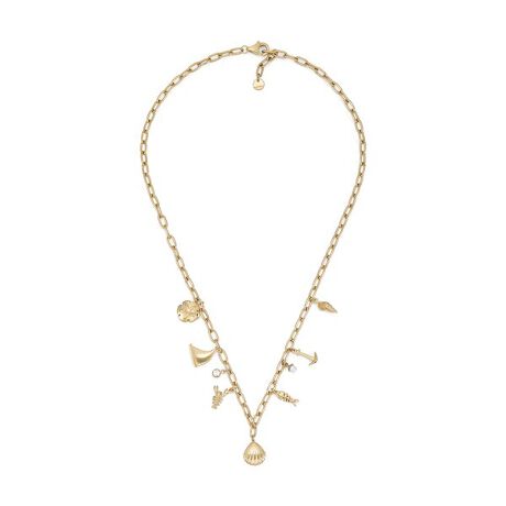 ポリッシュ仕上げのゴールドトーンのステンレススチール製リンクに海からインスピレーションを得たチャームを組み合わせ、ロブスタークラスプで留めるモダンなネックレス。