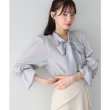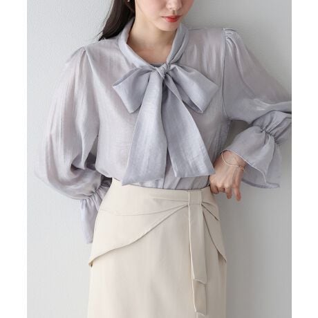 ナチュラルな光沢と繊細な透け感が美しい、エレガントなボウタイブラウス。