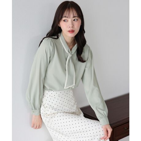 首元のタイデザインが目を惹くフェミニンなブラウス。