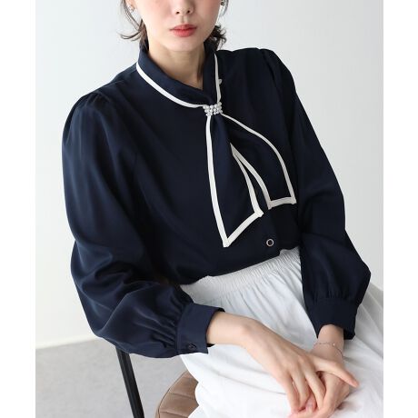 首元のタイデザインが目を惹くフェミニンなブラウス。