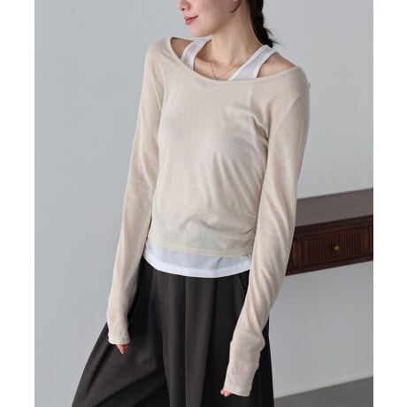 女性らしい抜け感のあるレイヤードライクシアーカットソー