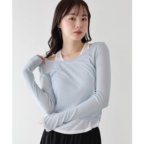 女性らしい抜け感のあるレイヤードライクシアーカットソー