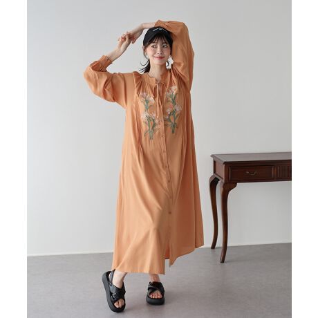 フラワー刺繍が華やかな大人の魅力を引き出すシャツワンピース