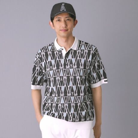 総柄モノグラムジャカードが華やかな半袖ニットポロシャツ