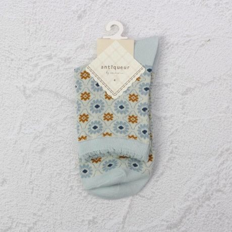 蚤の市に並んでいるアンティーク雑貨などからインスピレーションを得て靴下にしました。
