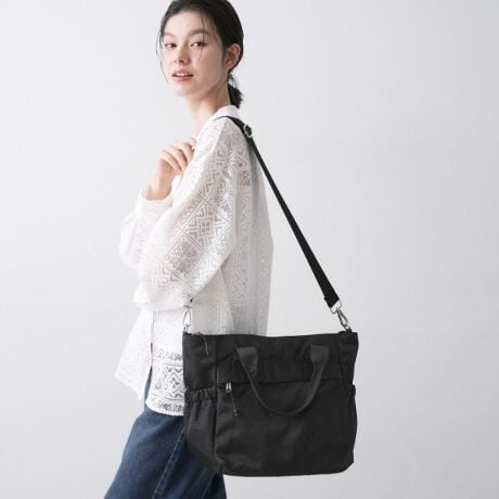 軽量で扱いやすいナイロン素材を使用した、デイリー使いに便利なトートバッグ。