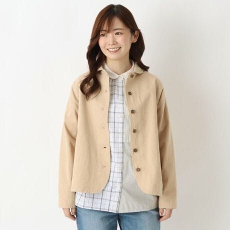 カチッとなりすぎない形なので色々な所で活躍できる1枚です。