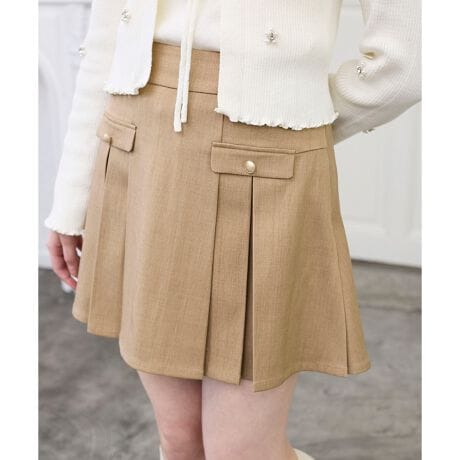 ポケットにアンティーク調のゴールドボタンをあしらったプリーツスカート。