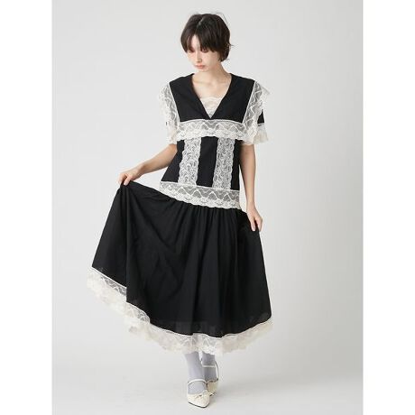<b>【レースを贅沢にあしらったセーラーカラーロングワンピース】</b>