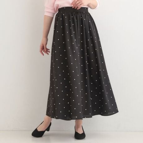 ドット柄・無地・花柄のアソート展開で、それぞれ違った雰囲気を楽しめるフレアスカート。