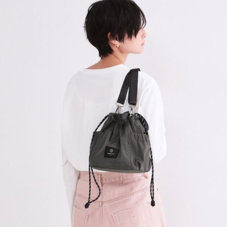 ・開き口サイドの紐を引っ張ると巾着シルエットになるトレンドデザイン