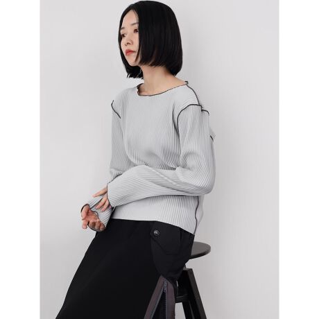 すっきりとしたシルエットをベースに、細かなプリーツで表情を加えたデザイントップス。