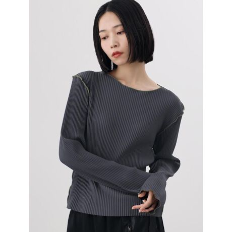 すっきりとしたシルエットをベースに、細かなプリーツで表情を加えたデザイントップス。