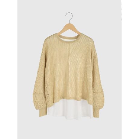 異素材の表情が楽しめる、レイヤード風ドッキングニット。