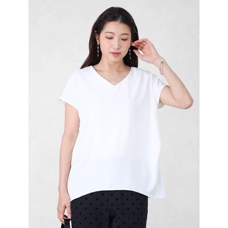 首回りをすっきりと見せてくれるざっくりとしたVネックが嬉しいポイントです。