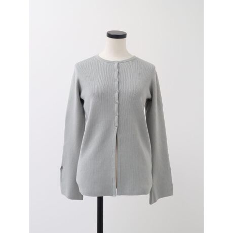 繊細なリブ編みが華奢見えを叶えるコンパクトカーディガン。ボディに心地よくフィットする女性らしいシルエットながら、着心地は軽やかでストレスフリー。フロントの裾にはボタンを付けず、軽く開いたデザインに仕上げることでウエストラインを自然に引き立て、スタイルアップも叶えてくれます。さらに袖口にはスリットを施し、さりげない抜け感と動きをプラス。洗練されたミニマルなルックスの中に、細部のディティールが映える一着です。