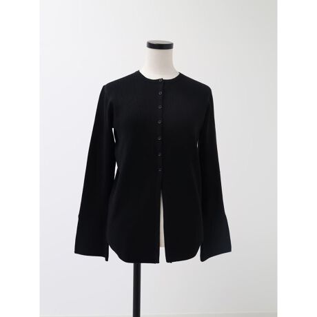 繊細なリブ編みが華奢見えを叶えるコンパクトカーディガン。ボディに心地よくフィットする女性らしいシルエットながら、着心地は軽やかでストレスフリー。フロントの裾にはボタンを付けず、軽く開いたデザインに仕上げることでウエストラインを自然に引き立て、スタイルアップも叶えてくれます。さらに袖口にはスリットを施し、さりげない抜け感と動きをプラス。洗練されたミニマルなルックスの中に、細部のディティールが映える一着です。