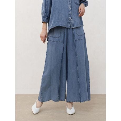 ・ワイドなシルエットにウエストゴム仕様で、リラクシーな履き心地なのも嬉しいポイント◎