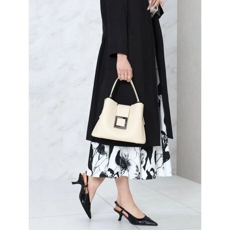 スクエア型のバックルがアクセントになったバッグ。