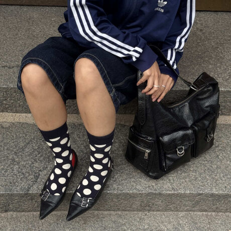 カラフルな水玉模様が特徴のビッグドットソックスで、コーディネートに遊び心をプラスしましょう。