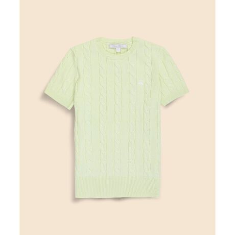 ブランドの象徴である子羊の刺繍をあしらった、オーセンティックな半袖ケーブルセーター