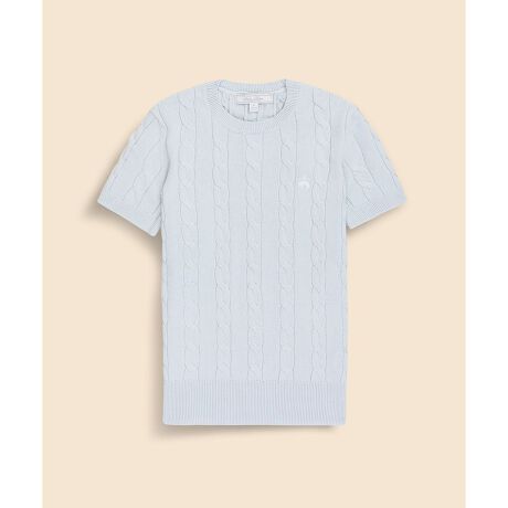 ブランドの象徴である子羊の刺繍をあしらった、オーセンティックな半袖ケーブルセーター