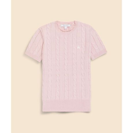 ブランドの象徴である子羊の刺繍をあしらった、オーセンティックな半袖ケーブルセーター