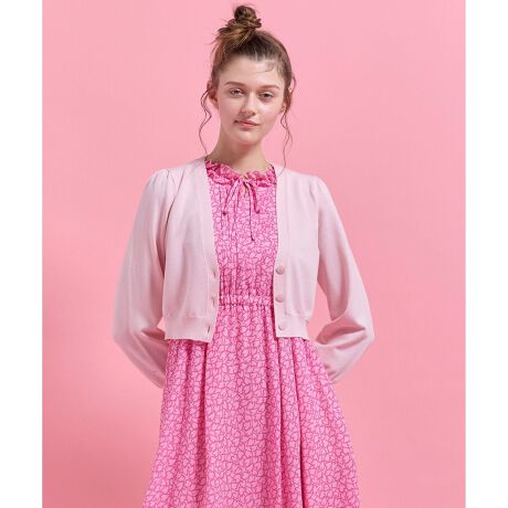 すっきりとしたシルエット、ドレスと合わせてもスタイルが良く見えるコンパクトな丈感で幅広く活躍するカーディガン。